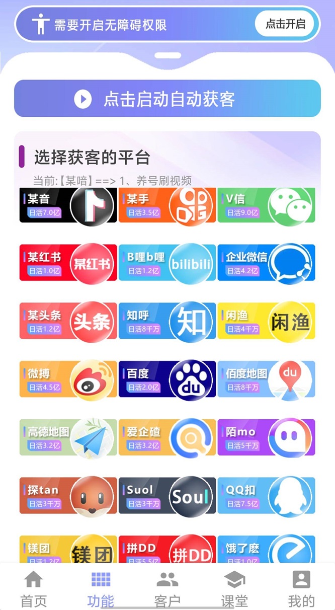 25版Ai云获客4.0-拓客源-加粉-获客-营销软件程序 安卓高级版本RPA机器人截流获客 内置适配教程、APP下载 支持以下21个平台获客 某音、某手、V信 H书、B站、企微 头条、知乎、咸鱼 微博...