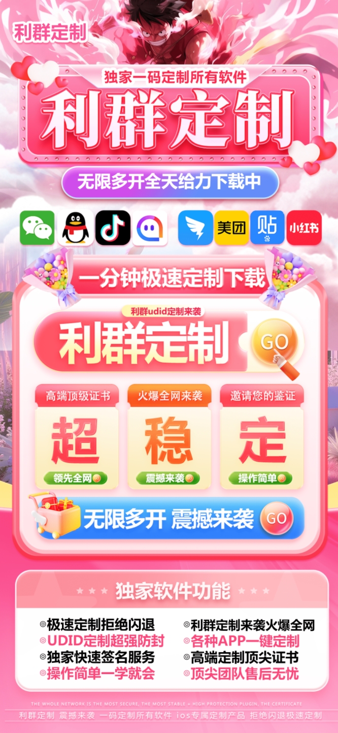 苹果利群定制-微信多开-boss直聘-小红书-闲鱼t-iktok 独家V3定制签名系统 1.汇聚全网顶尖苹果多开源包 2.零掉签 零闪退 赠送P12证书文件 3.不限量 可下载所有平台应用 4.可改图标 改名 改...