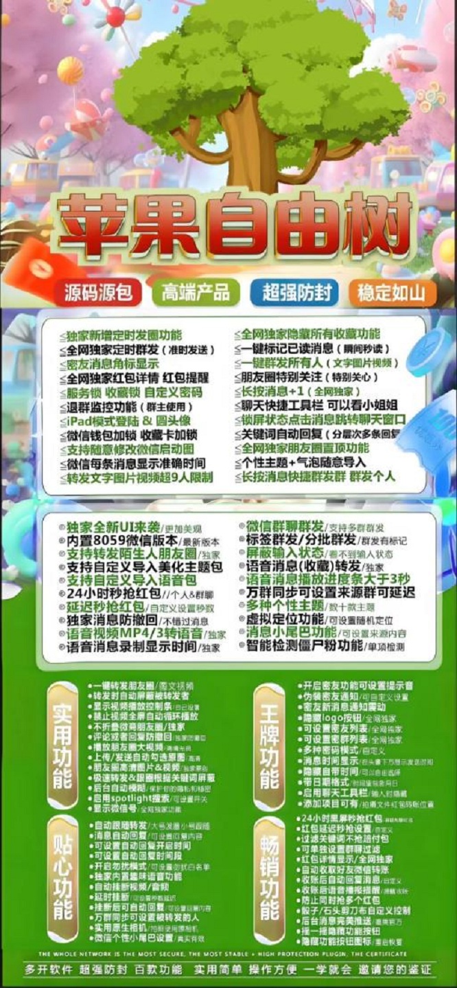 自由树苹果TF-阿修罗8065-微信分身-秒抢红包-定时发圈-微信多开