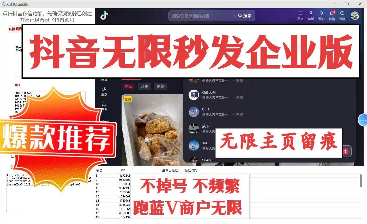 斗音无限私信-智能营销软件 帐号可以多帐号登陆 发送信息,可自定义 导入用户UID,开始无限私信 私信白号可达200-700条 发送蓝V商家,可无限发,秒发不限制 官方安装网址:https://w...